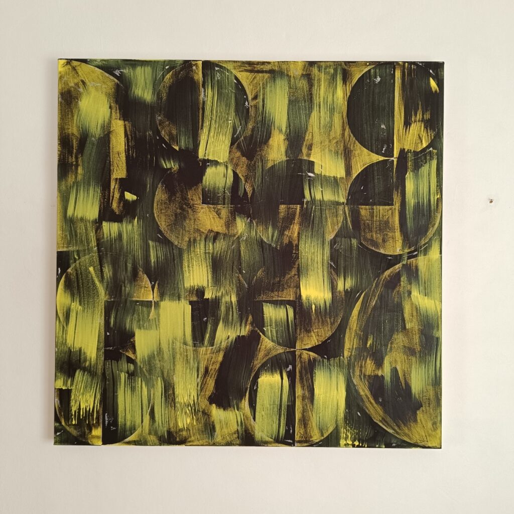 yellow-black constellation, 2025, acrylic on canvas, 120 x 120 cm