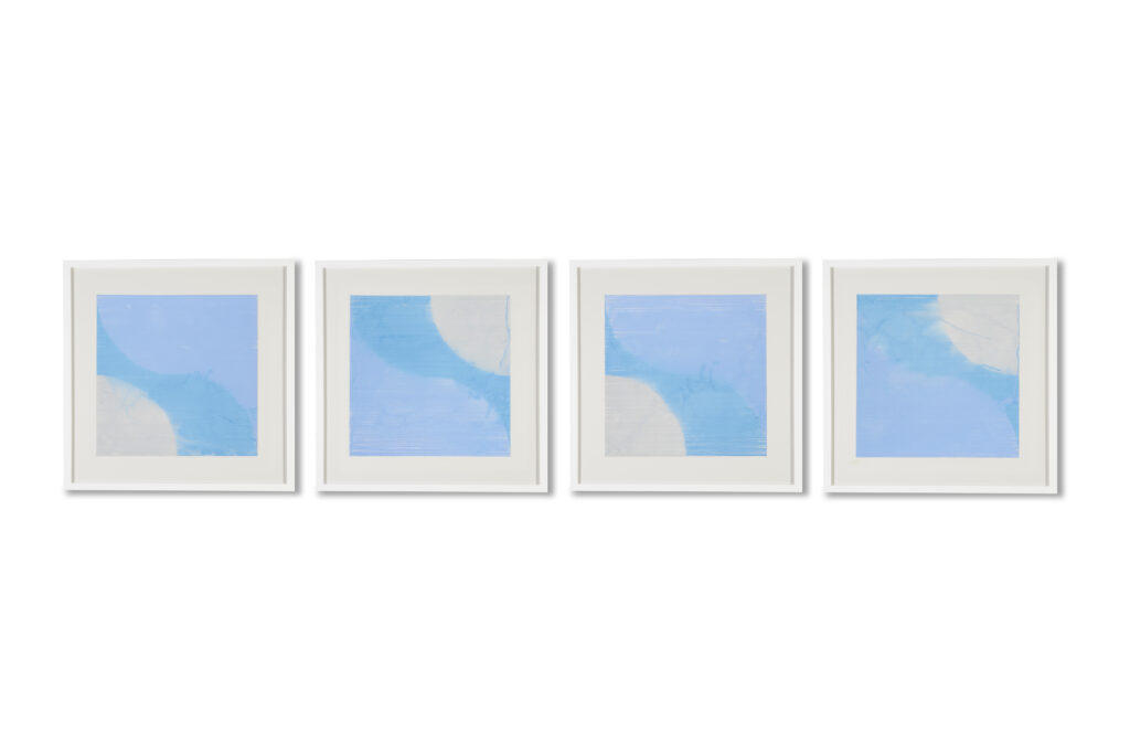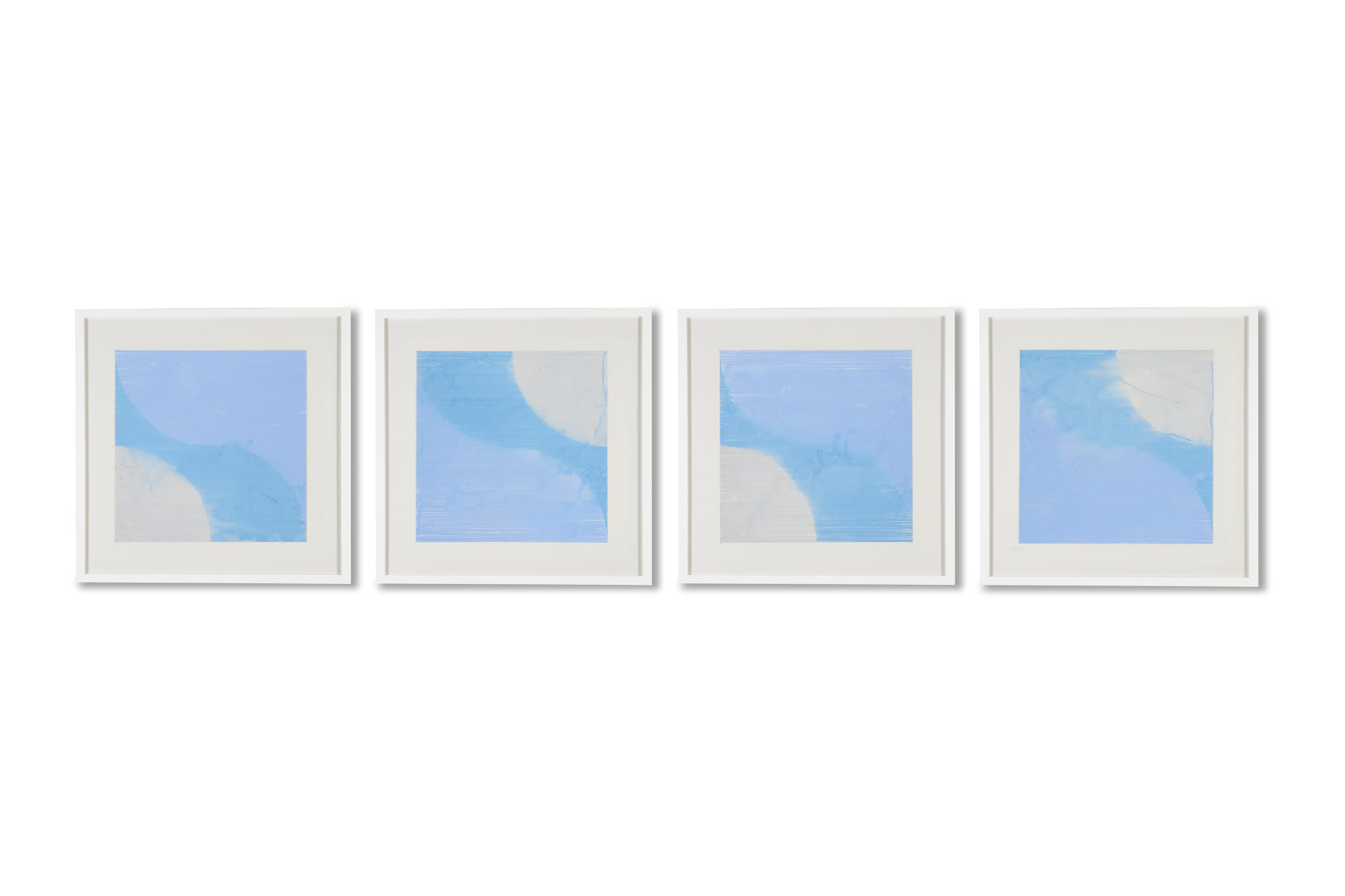repetition of four light blue and grey , 2024, watercolor on paper, 44 x 44 cm each